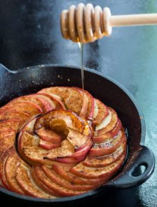 En un cuenco poner un poco de canela y encima una capa de manzanas.