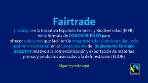 Fairtrade Ibérica faz parte do fórum de cooperação, gerador de informação e centro de conhecimento, que é uma referência no compromisso das empresas espanholas com a biodiversidade, para responder às iniciativas de conservação da biodiversidade do Ministério da Transição Ecológica e do Desafio Demográfico, e cumprir com os compromissos adquiridos na Convenção das Nações Unidas sobre a Diversidade Biológica.
